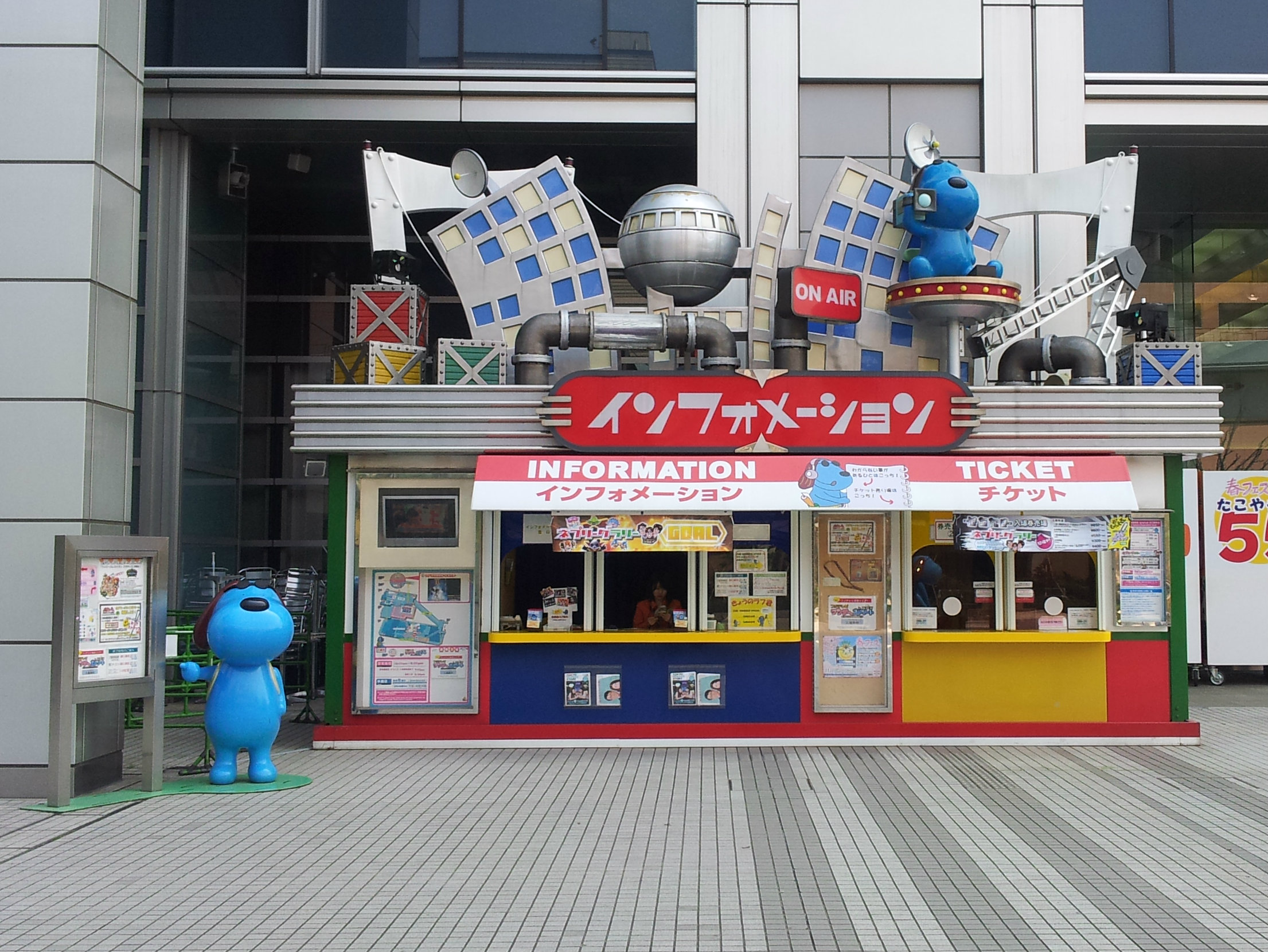 Loket ini terdapat di Plaza dekat eskalator, loket yang lebih kecil tersedia juga di lantai 7. Di sinilah pengunjung membeli tiket untuk bisa naik ke lantai 24 dan 25. Harga tiket per tahun 2014 untuk dewasa adalah 550 yen. Tiket masuk dilengkapi dengan guide book yang tersedia dalam bahasa Inggris. Jangan abaikan buku kecil ini, kalau malas baca info di dalamnya, coba langsung cek halaman terakhir. Ada permainan kecil di sana, semacam treasure hunt. Pengunjung diminta mengumpulkan cap yang teredia di setiap lantai. Kalau semua cap sudah lengkap, tunjukkan ke loket di plaza ini lagi untuk dapat souvenir Fuji TV. Ga seberapa sih, tapi permainan berburu cap ini berhasil bikin tur makin seru.