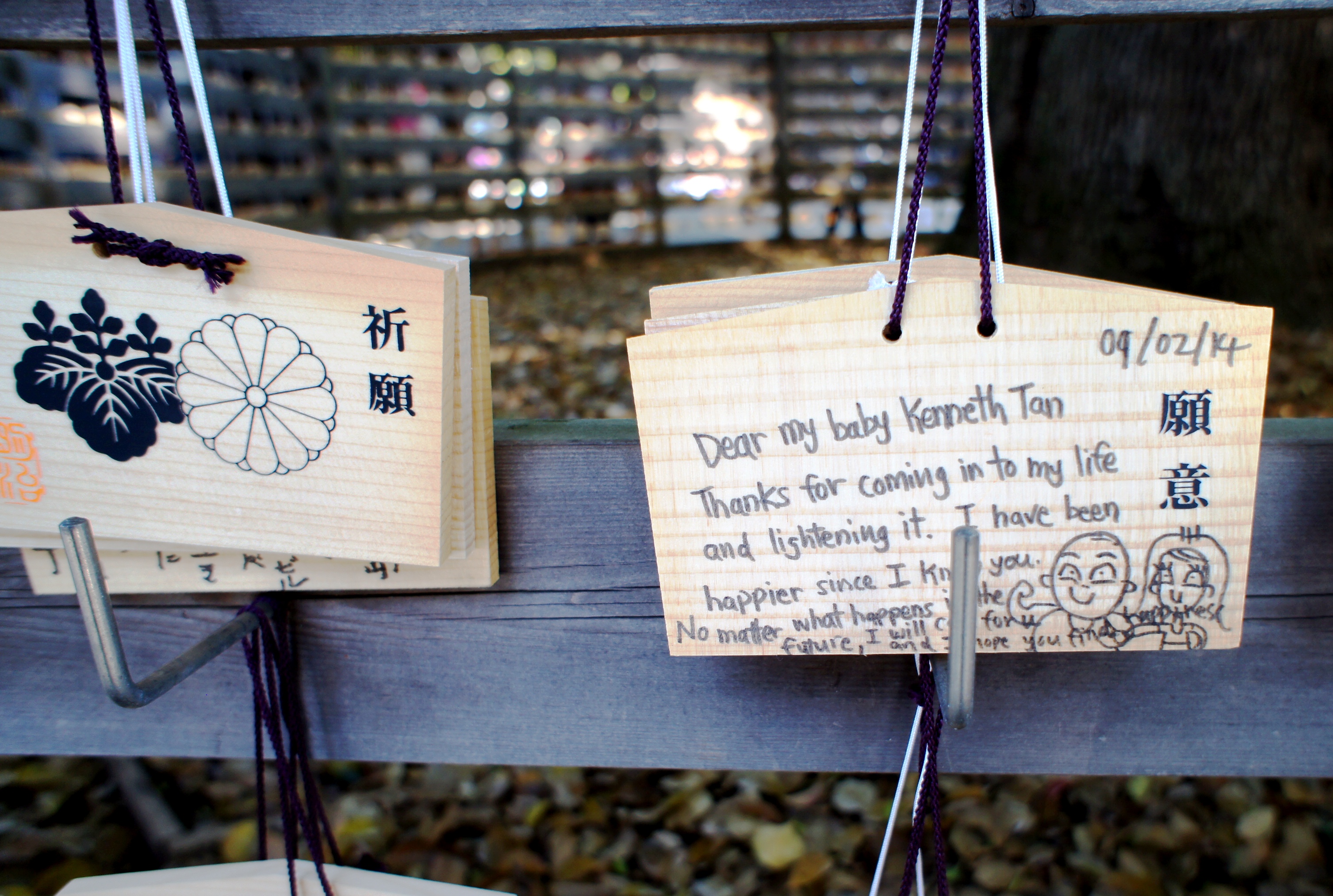 Seyogyanya kuil, ya pasti jadi tempat untuk beribadah dan berdoa. Kalau waktu di Kuil Sensouji kami banyak menemukan Omikuji, di sini kami menemukan Ema. Dengan menuliskan doa atau harapan kita pada papan Ema, dan setiap pagi diberkati oleh pendeta kuil, diharapkan doa atau harapan tersebut terkabul. Doa yang tertulis pada Ema ga cuma dalam bahasa Jepang tapi ada dalam bahasa Cina, Jerman, sampai Thailand. Mungkin kalo ditilik satu per satu bisa nemu yang bahasa Indonesia.