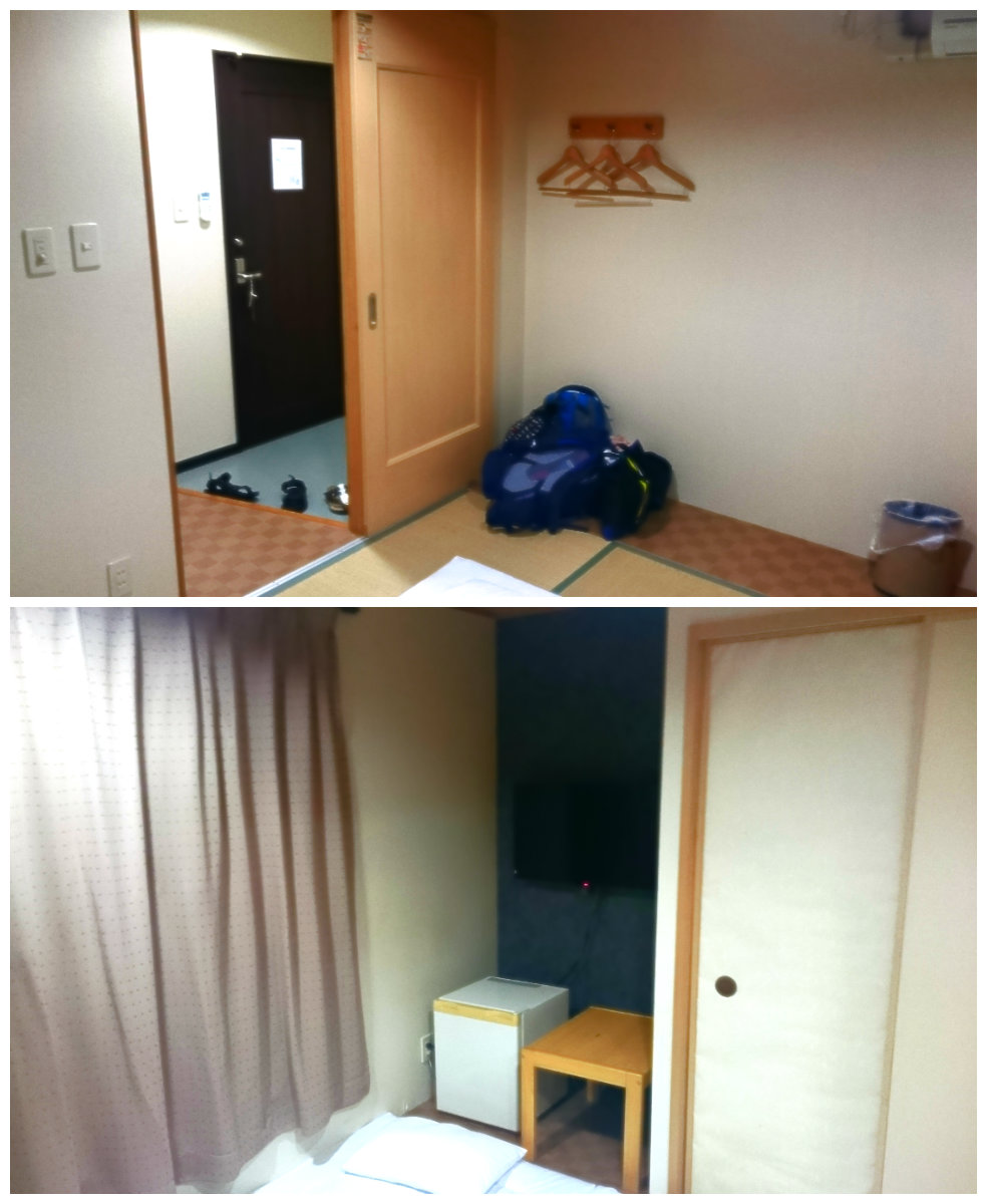 Dengan harga mulai dari ¥6500 per malam kamu sudah bisa tinggal di twin room bergaya tradisional Jepang. Bantal, selimut, dan haduk tersedia. Ukuran kamarnya memang tidak terlalu luas, tapi masih cukup untuk taruh barang dan sholat. Ada kulkas, AC, nakas, tempat sampah, bahkan gantungan baju. Ada lemari pintu geser macam di kamar Nobita juga, sayang ga ada Doraemon yang tidur di dalamnya :p