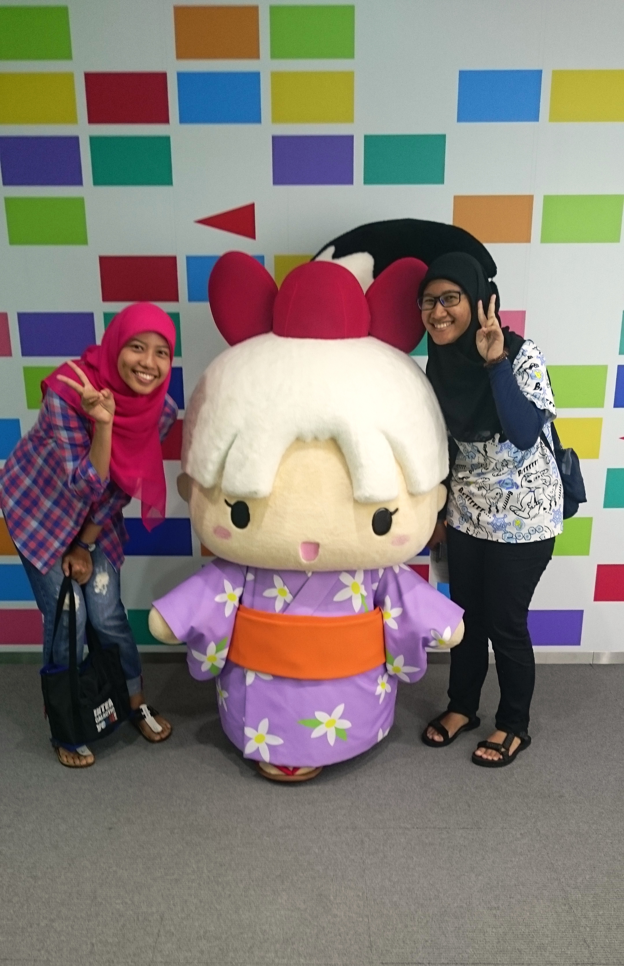 Oh iya, ada waktu-waktu tertentu di mana kita bisa bertemu sama maskot Yurukyara NHK Studio Park yang namanya…….. err… kami lupa. Sekarang kami tau kenapa MJ hyper banget setiap ngeliat yurukyara, mereka emang ngegemesin bangeeeettt!!