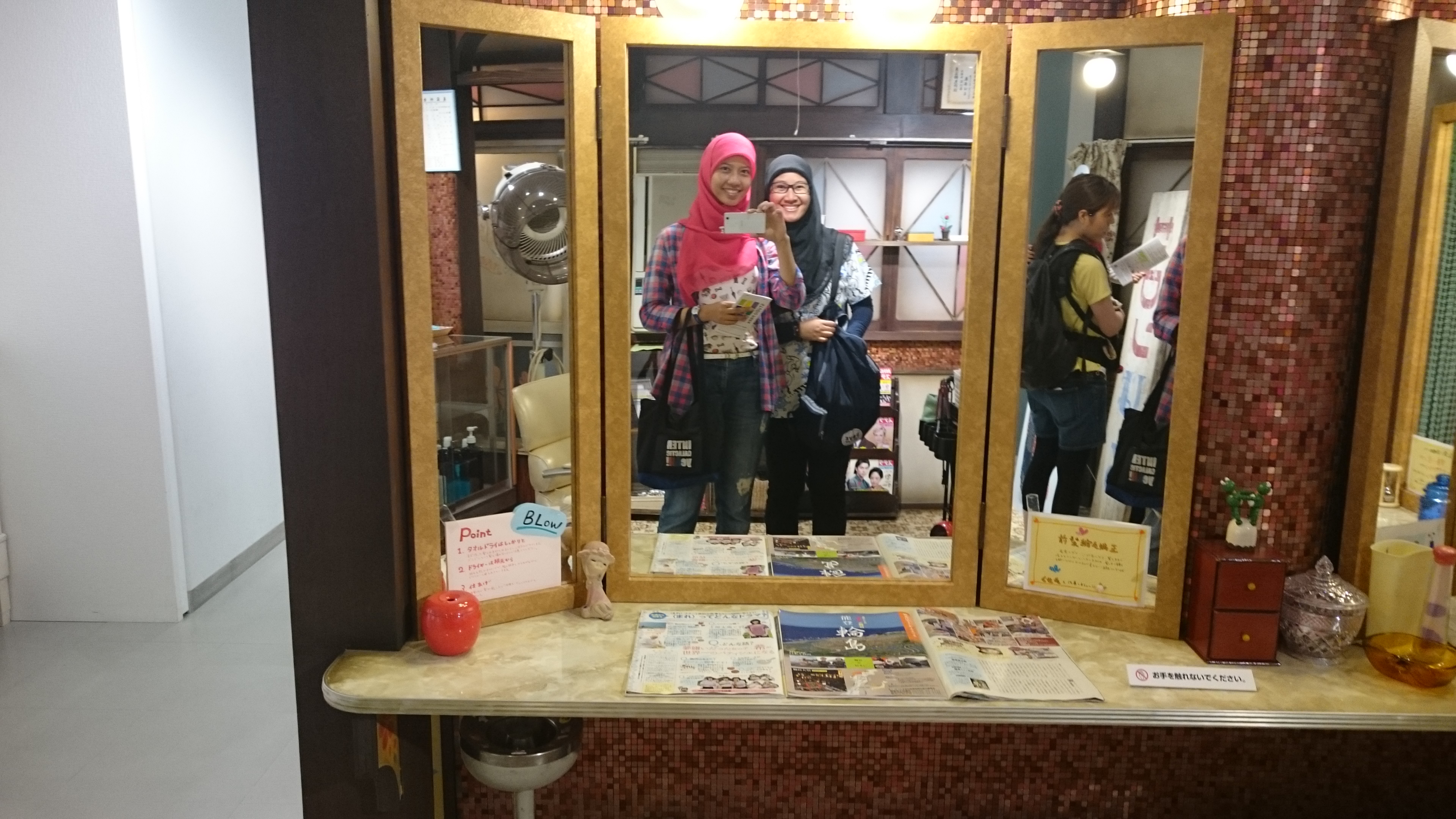 Kostum taiga dorama “Hana Moyu” yang waktu itu lagi tayang. Ternyata Inoue Mao badannya kecil (apa kami yang berbadan raksasa?)