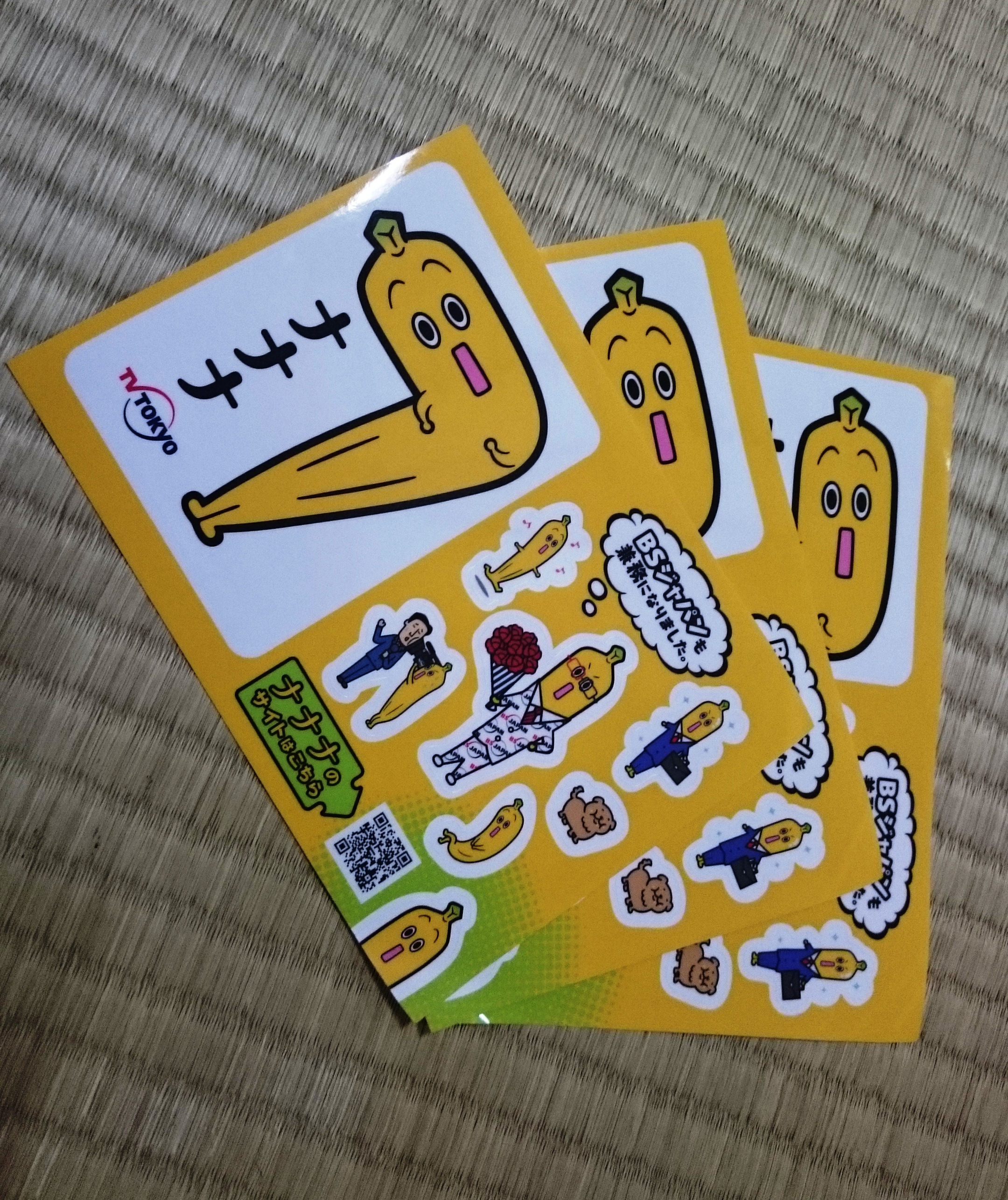 Lantaran ga niat beli dan cuma pengen liat-liat aja tapi ga enak kalau langsung pergi, akhirnya sok nanya-nanya lah barang yang ga ada di stand itu trus pura-pura kecewa lantaran ga ada, hahahaha. Info dari si staf, goodies shop TV Tokyo hanya ada di Character Street Tokyo Station. Setelah mengucapkan terima kasih kami pun keluar dari gedung TV Tokyo. Baru jalan beberapa meter, kami baru ingat belum fotoin stasiun TV-nya. Pas balik badan mau foto, si Mas Staf yang tadi nganterin masuk gedung lari-lari ke arah kami. Jeng jeng!!! Ada apakah gerangan? Eh taunya si Mas Staf ngasih sticker NaNaNa, maskotnya TV Tokyo!! Gratis!! Alhamdulillah… rejeki kopedtraveler sholehah….