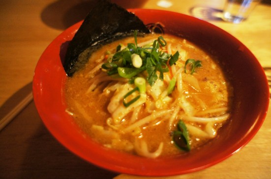 Our first Ramen was from Komurasaki originated from Kumamoto. Luckily they have half portion option for Vegetarian Ramen. Their speciality is the roated garlic crumb on top of Ramen. The noodle falls into thin type, with a light soup. My guess they use miso based for the soup, that’s why it gives slightly white color. Since I’m not a fan of miso-based Ramen, so we grade this Ramen as so-so.