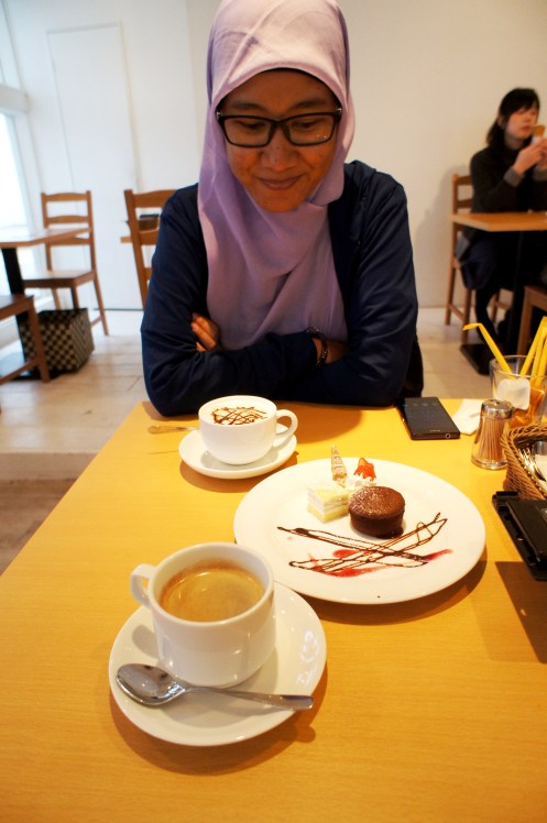 We already had lunch, so we just ordered a warm drink and some cakes. They have coffee set menu (warm drink + cake) for 700 yen, which I think is not pricey for a themed cafe.