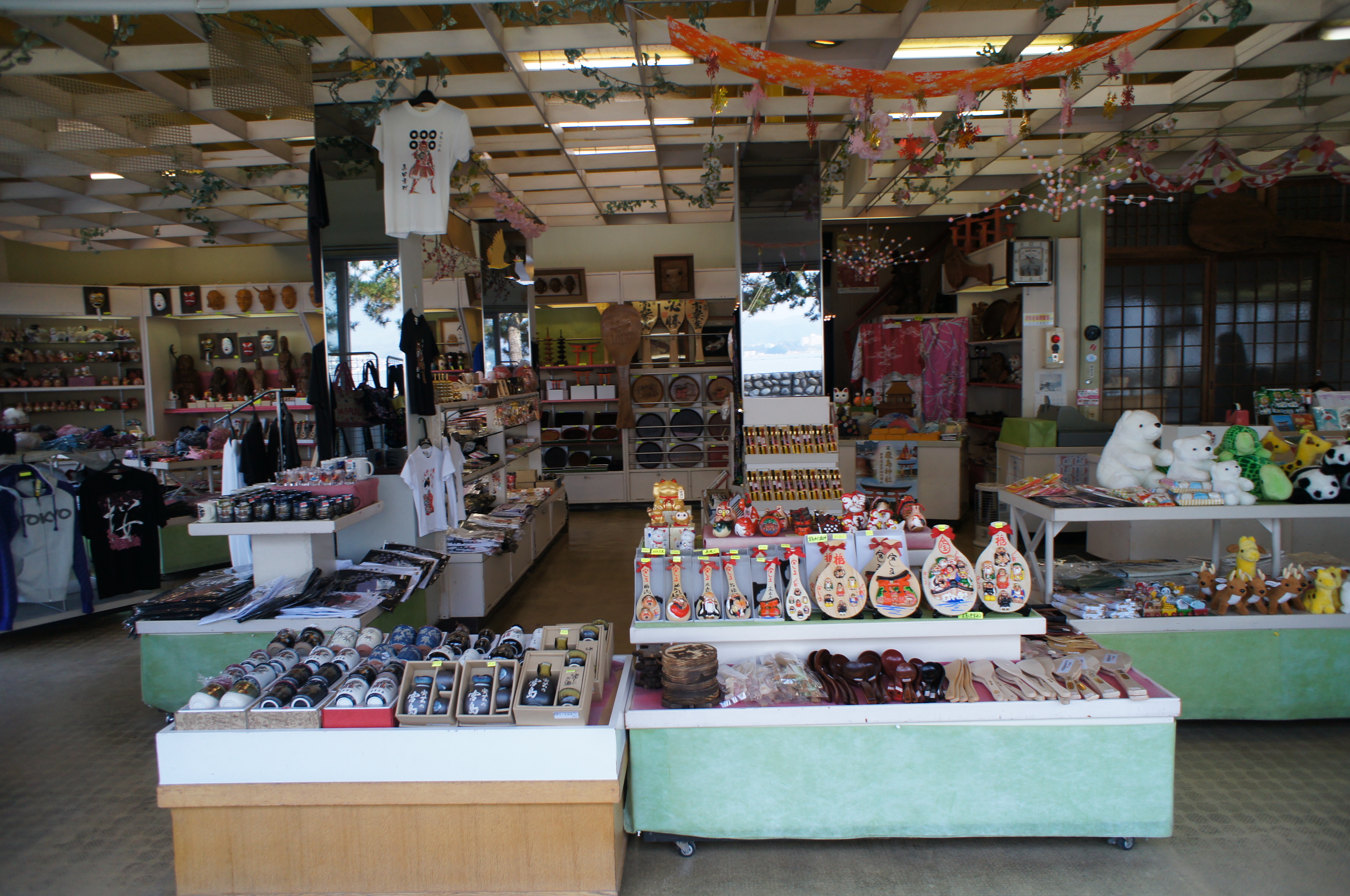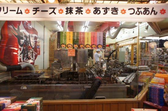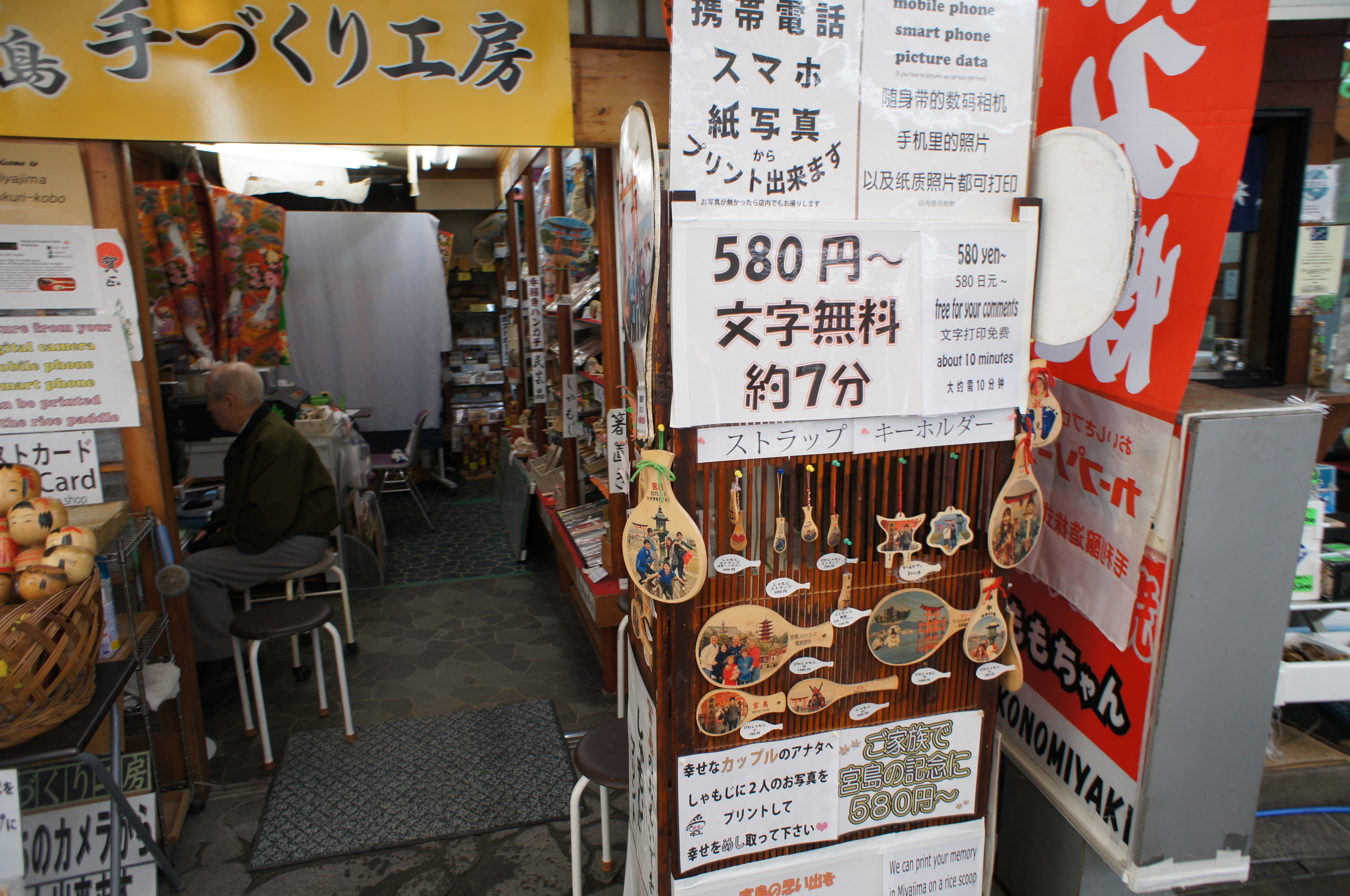 Sebelum pulang kami sempatkan beli souvenir dulu. Tampaknya yang khas dari Miyajima adalah kue berbentuk daun momiji dan centong nasi.