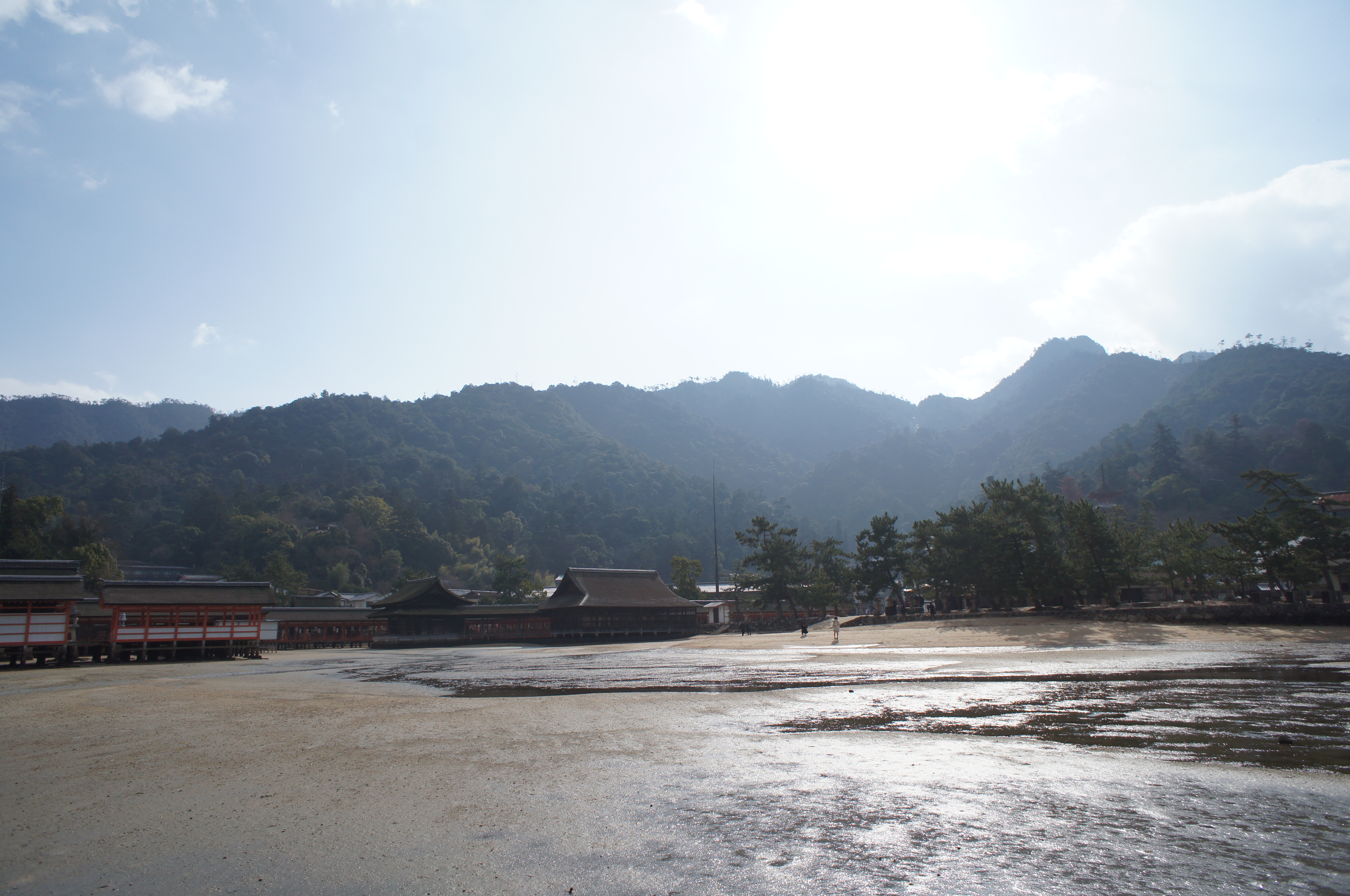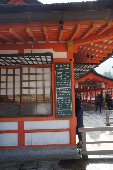 Spot wisata utama di Miyajima sebenarnya adalah kuil Itsukushida. Tapi berhubung untuk masuk ke dalam harus bayar dan kami ini kan #kopedtraveler, jadi cukup liat dari luar aja. Oh iya, tiap harinya akan ada pengumuman kapan pasang-surut (bukan kapan pasang togel #eaaaa #krikkrik). Karena kalau pas lagi surut kita punya kesempatan untuk jalan mendekati Torii yang ga lagi ngapung, hehe.