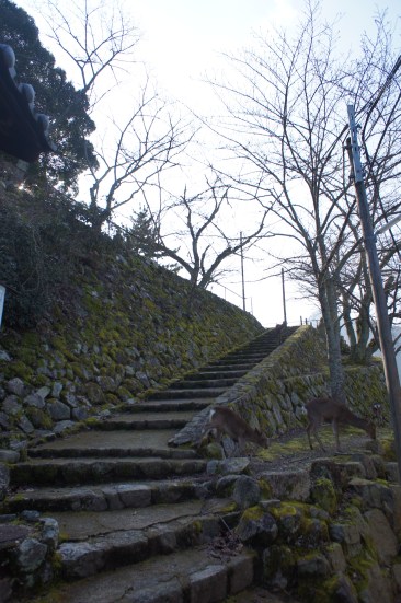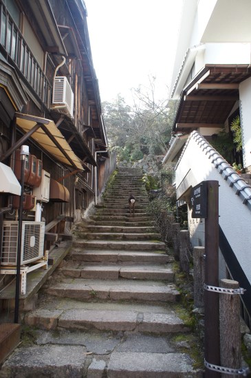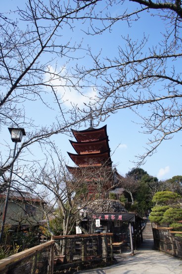Untuk menjelajahi Miyajima, ada beberapa pilihan rute (jalan kaki) yang bisa diambil tergantung waktu yang dimiliki (peta tersedia di tourist information centre). Kami ambil rute yang 2 jam tapi pada akhirnya jalan asal aja tergantung belokan mana yang tampak lebih menarik. Ga perlu khawatir nyasar, kami berpatokan kalau jalanan semakin menanjak dan semakin sepi, berarti semakin menjauhi pantai. Sayang kami ke sana pas musim dingin, jadi pepohonannya botak semua. Pasti pemandangannya jauh lebih indah pas musim semi atau musim gugur.