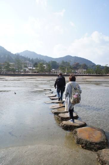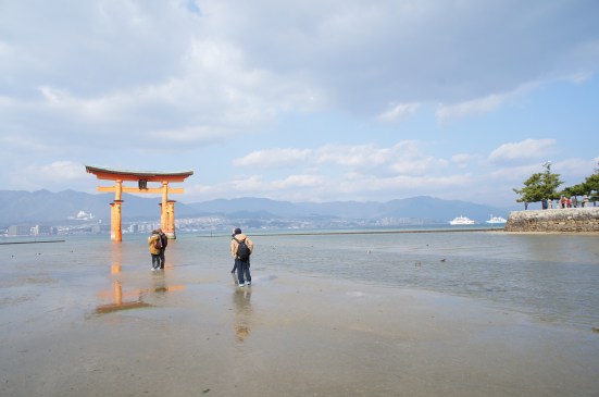 Beres makan, kami kembali berjalan menuju dermaga untuk naik ferry. Pas banget lagi jadwal surut, kita jadi bisa berjalan menuju Torii (yang tidak lagi) mengapung. Kalau ga tau malu mah bisa juga sekalian jalan ke kuil Itsukushida tanpa bayar, hehe.
