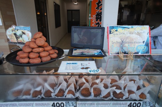 Sesampainya di Miyajima, suasana masih sepi belum banyak toko yang buka. Kami memang sengaja ke sana pagi-pagi karena hanya punya waktu setengah hari sebelum melanjutkan ke kota berikutnya. Untung ada toko roti goreng isi kari tiram yang buka, soalnya kami lapar banget belum sempet sarapan. Rasanya enak banget dimakan panas-panas, apalagi tiram yang dimasukkan sebagai isian ga cuma satu, melainkan dua buah sekaligus. Duh, jadi pengen makan lagi kan….