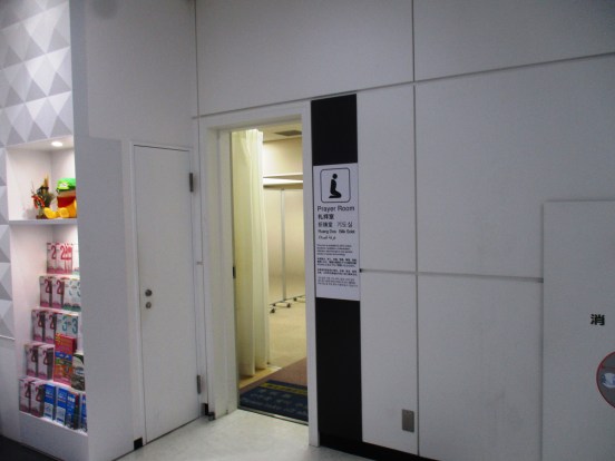 Baru-baru ini, kami juga mencoba mushalla yang letaknya setelah bagian imigrasi. Cukup mudah untuk menemukannya karena ada di sebelah konter Duty Free Pick Up di lantai satu. Fasilitas yang disediakan mirip dengan mushalla yang ada di luar dengan tepat wudhu disediakan di dalam tapi tidak ada sajadah maupun mukena.