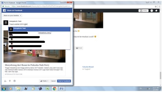 - Bagi yang share ke Facebook, setalah mengklik tombol, tuliskan sedikit komentar kalian dan mention akun kami (Intergalactic Yeah)