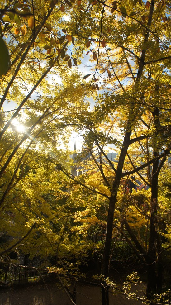 Yang membuat saya kesemsem dengan kastil ini bukanlah bangunannya, melainkan taman yang mengelilinginya. Saya berkunjung saat musim gugur menjelang matahari tenggelam. Sinar matahari yang berwarna keemasan jatuh tepat di antara daun-daun yang menguning membuat suasana jadi romantic banget! (padahal saya sendirian aja sih ke sana).