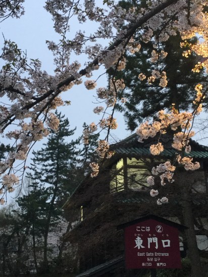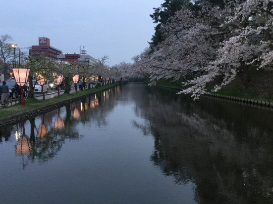 Salah satu tambahan daya tarik dari Hirosaki Cherry Blossom Festival ini adalah pemandangan bunga sakura di malam hari. Meskipun saya sudah sengaja untuk ke sana sore hari biar sempat melihat pemandangan lampu-lampu yang menyinari sakura, tapi karena udaranya yang dingin saya pun mengurungkan niat untuk tinggal lebih lama. Jadi jika ada yang berniat menghabiskan malam di sini, jangan lupa bawa jaket yang agak tebal ya.
