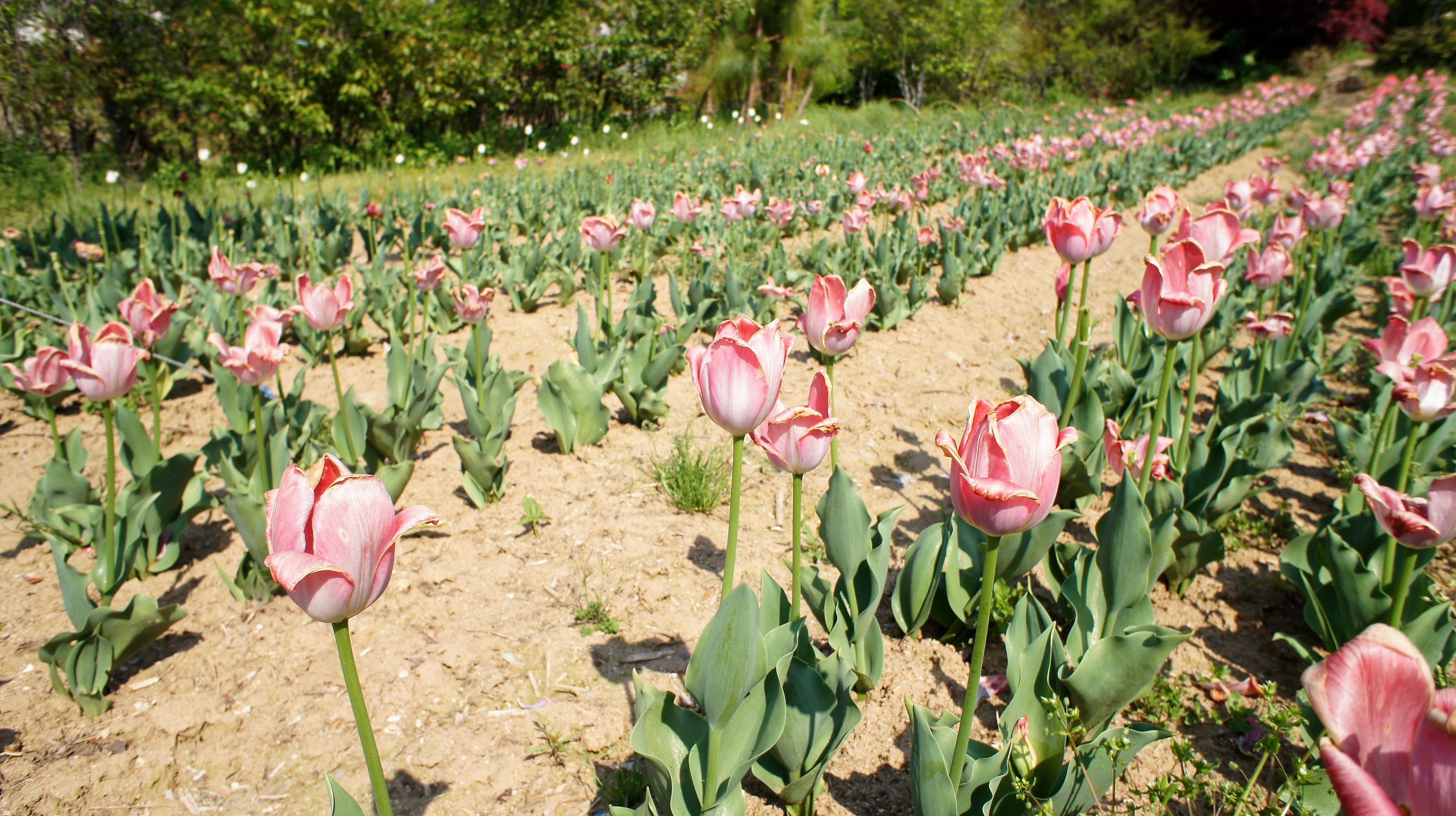 Di kaki bukit ada lahan-lahan yang ditanami bunga lainnya seperti tulip. Ada juga kolam ikan dan semacam ruang pameran foto.