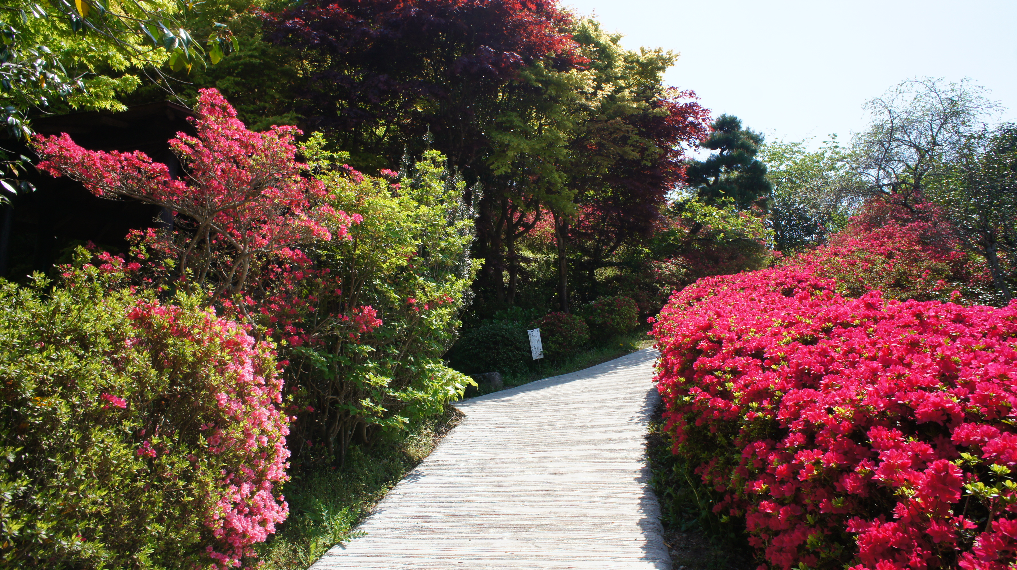 Sepanjang jalan kami disuguhkan dengan berbagai macam bunga yang didominasi warna merah, putih, ungu dan pink. Jika ingin piknik, ada beberapa spot berupa gazebo yang disediakan untuk menikamati bekal camilan. Terdapat pula beberapa kursi batu untuk yang ingin beristirahat melepas lelah sejanak setelah capek jalan menanjak.