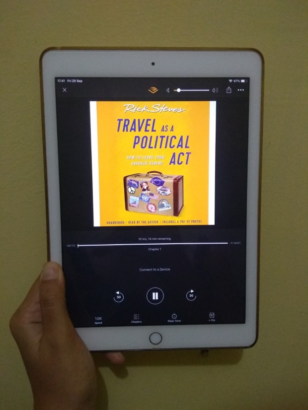 Sebagai orang yang sering traveling, pasti akan mencapai suatu masa di mana jalan-jalan tuh bukan lagi untuk dapetin foto yang bisa dipamerkan ke orang-orang ataupun gaya-gayaan pernah ke negara apa aja. Di buku ini dibahas bagaimana seorang traveler bisa juga berperan selayaknya diplomat yang membuka wawasan apa yang dipelajari di dunia lain, memperkenalkan negara kita di negara lain, dan membawa pelajaran apa dari negara lain yang bisa kita implementasikan di negara kita. Jujur, sejak baca buku ini, saya jadi loyal bayar pajak. Semoga aja pajak yang saya bayarkan ga dikorupsi ya, hahahahahaha. Oh iya, karena penulisnya orang Amerika, jadi kita pun bisa mempelajari sudut pandang orang Amerika terhadap negara lain yang kadang suka bikin saya komentar “duh dasar amerikiiiii…..”. Kalau beli versi audiobook, naratornya adalah penulisnya langsung.