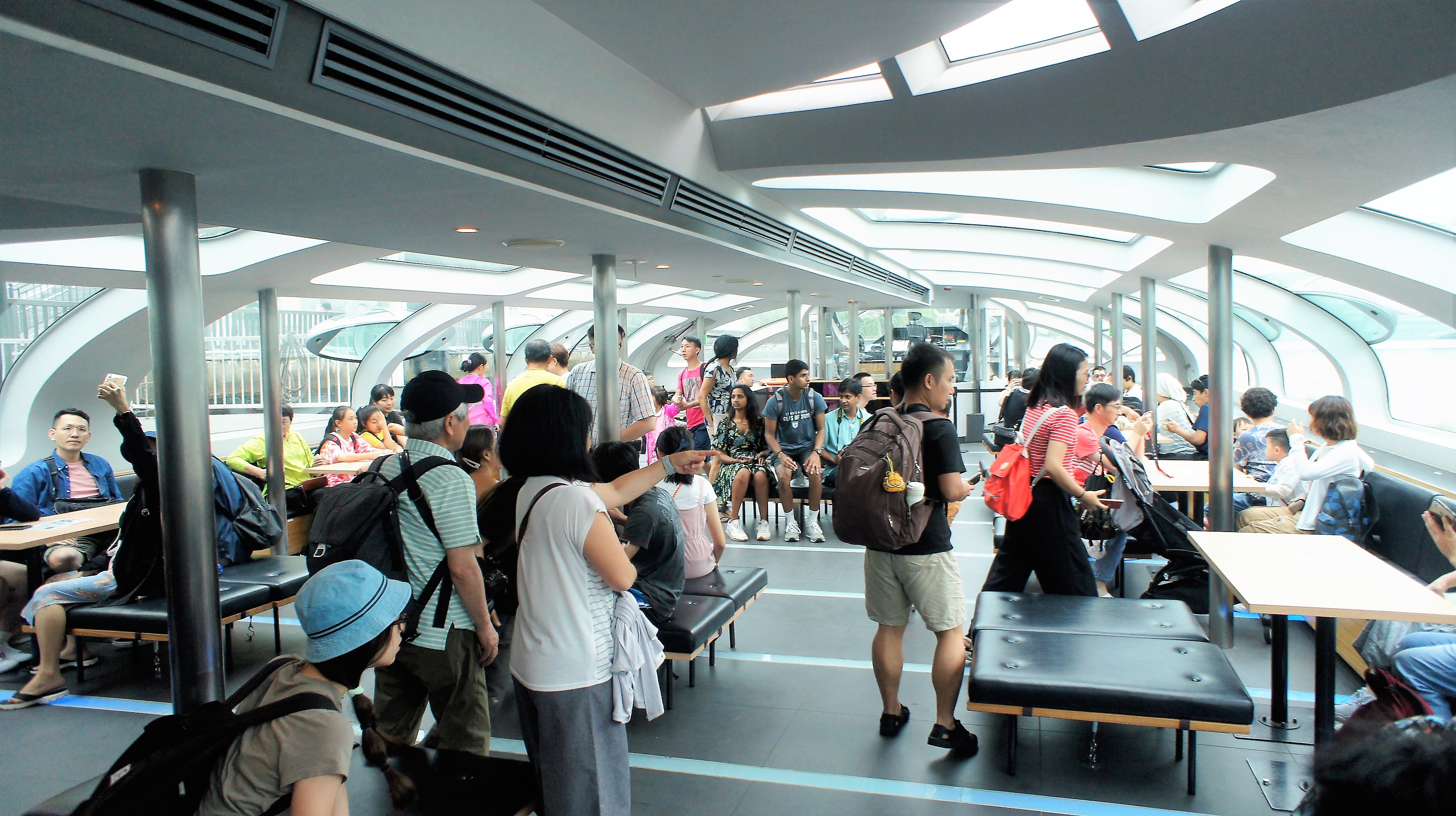 Setelah berlayar beberapa waktu, akses tangga menuju dek atas dibuka. Kita dapat melihat pemandangan dari atas dek tanpa halangan. Meskipun jumlah pengunjung yang boleh naik ke atas dek tidak dibatasi, tetapi staf selalu memperingatkan agar berhati-hati dan jika terlalu penuh akan membatasi jumlah orang yang naik.