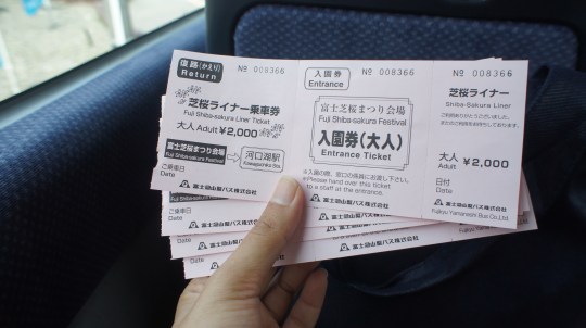 There area several access to reach there. We chose a bus from Tokyo Station to Kawaguchiko Station. Then we bought a Fuji Shibazakura Liner Ticket which covers return bus ticket from Kawaguchiko station to the festival site and entrance ticket.