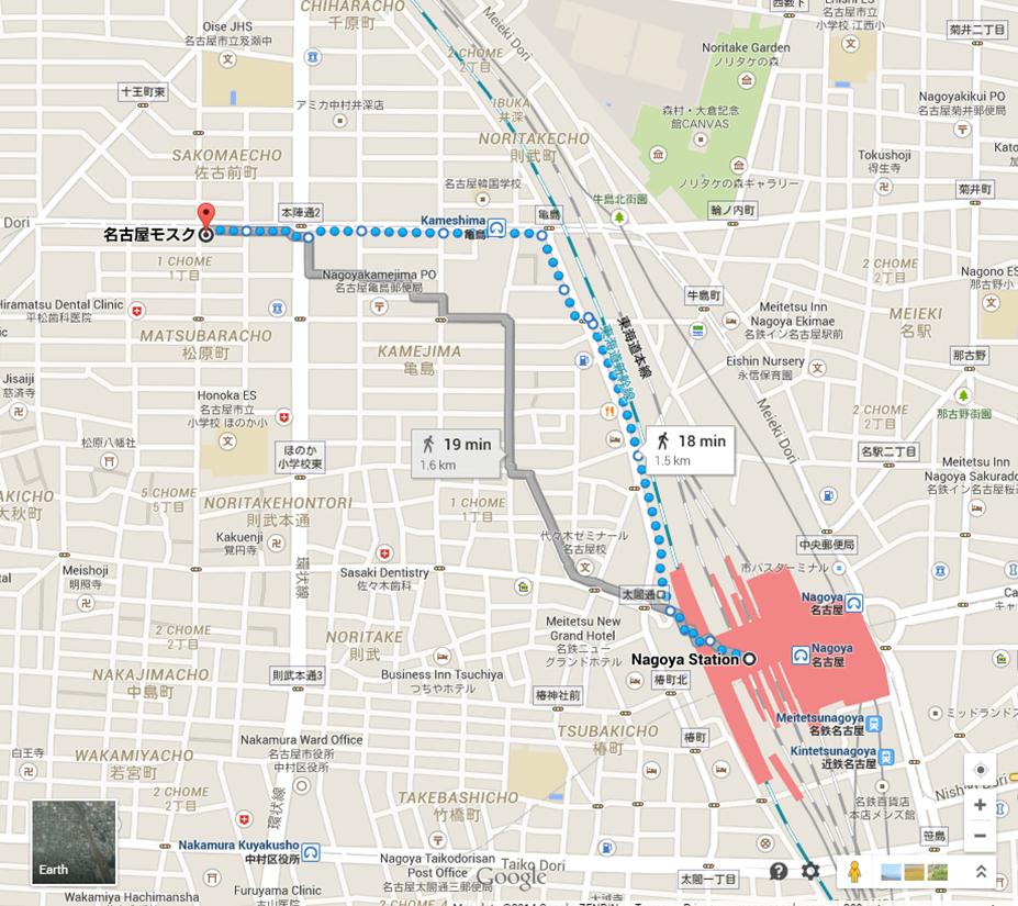 Dalam itinerary kami ke Japang, ada satu hari di mana kami harus menghabiskannya di Nagoya tanpa tempat menginap. Sampai sana pagi dan baru akan beranjak ke Tokyo tengah malam. Maka, mesjid atau mushola menjadi satu dari sekian tempat yang wajib kami singgahi untuk sholat. Oh yeah, di Nagoya ada mesjid dong.. Lokasinya cukup dekat dengan Nagoya Station, statsiun kereta terbesar di kota ini.